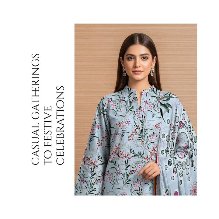 Upgrade your wardrobe with the Banadora 3-Piece Premium Linen Suit, combining comfort and elegance seamlessly. Crafted from high-quality linen, it offers lightweight breathability for all-day ease. The printed shirt showcases intricate Banadora motifs for a distinguished appearance. A matching flowing dupatta adds versatile styling options, while the printed trousers provide a refined and comfortable fit. This ensemble merges classic touches with modern design, perfect for casual outings, daytime events, or semi-formal gatherings.